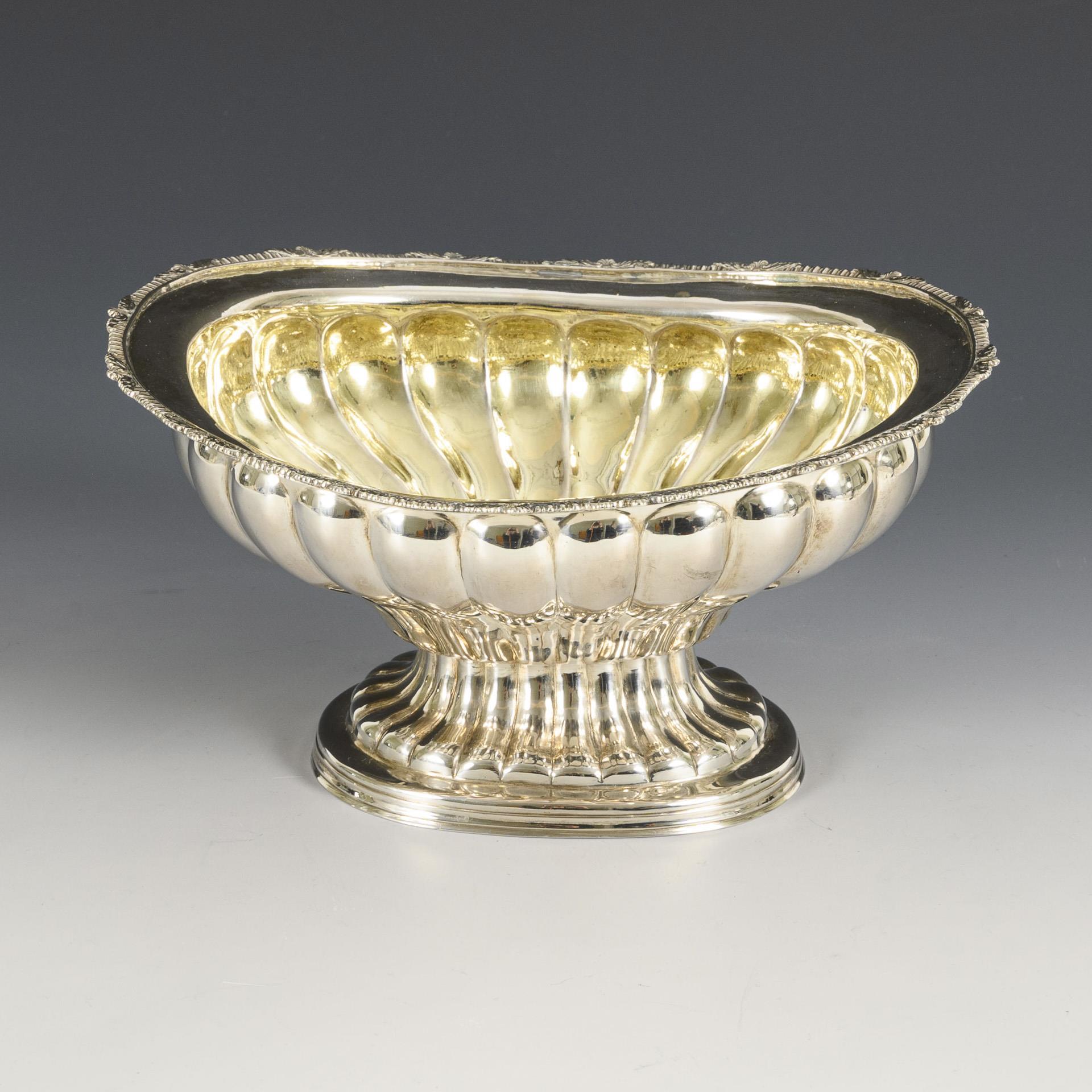 Oval foot bowl with gadrooned walls. Soldering on the underside of the foot.