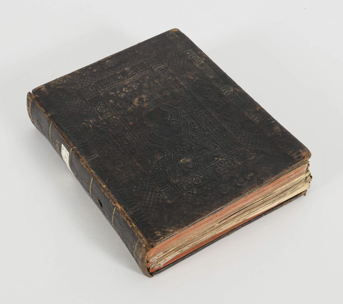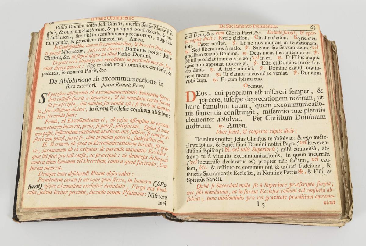 Title engraving with coat of arms of Lichtenstein-Kastelkorn, title page, 466 pages and five full-page engravings as well as numerous vignettes. Text in black and red with ninths. Embossed leather binding.