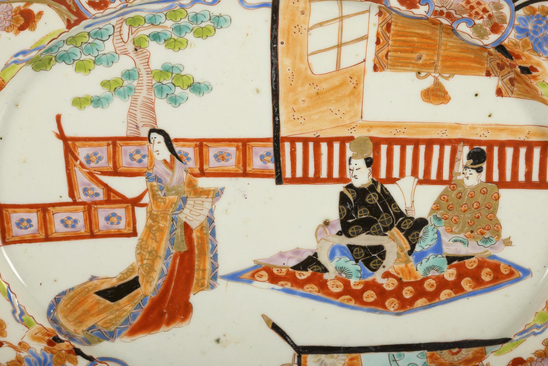 Multicolored painting, in the style of Imari porcelain. Underside with red, stylized bats.