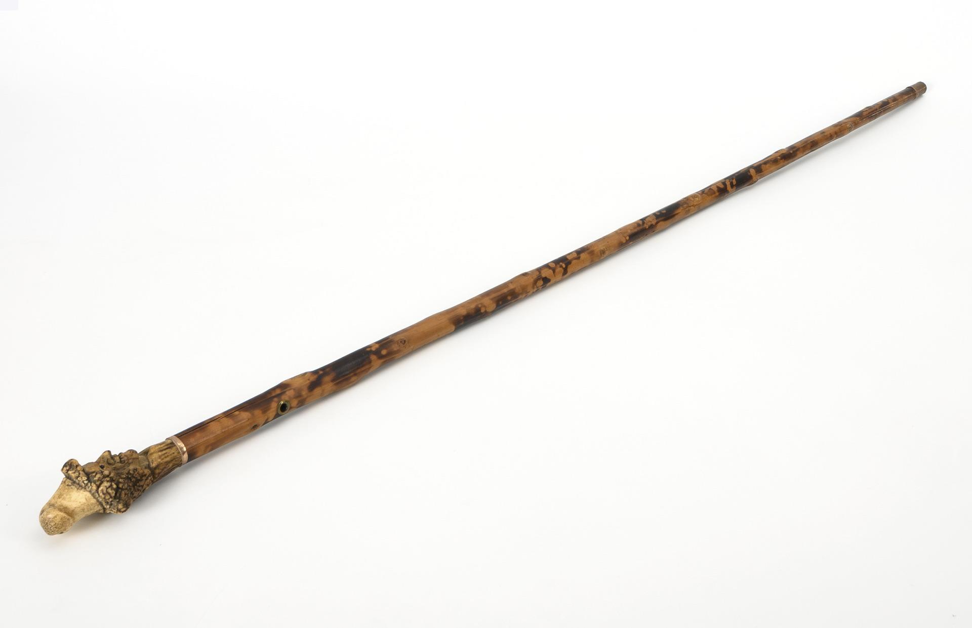 Walking stick with carved antler rose head.