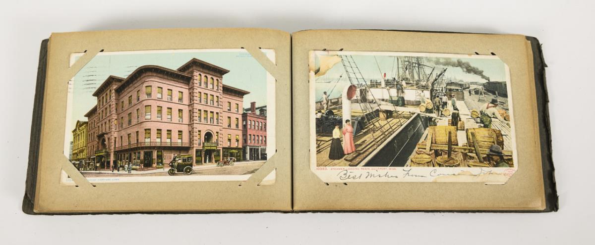 Approx. 364 postcards from America, before 1935, in the large red album "Greetings from near and far" and small, gray "Postcards" album.