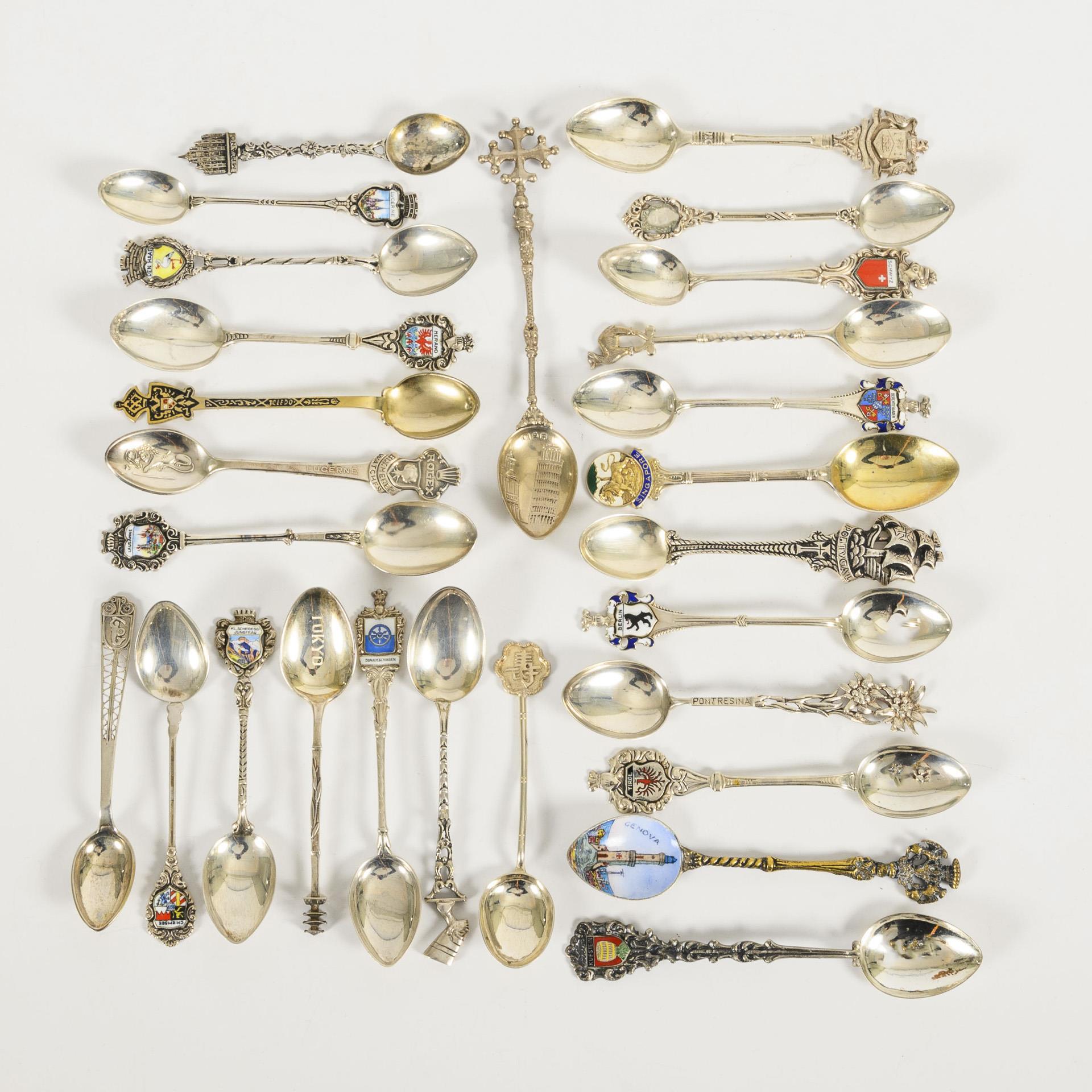 Collection of collecting spoons with a focus on Switzerland and Austria. Including Calcutta, Berlin, Pisa. Signs of wear, 1x defective (enamel missing).