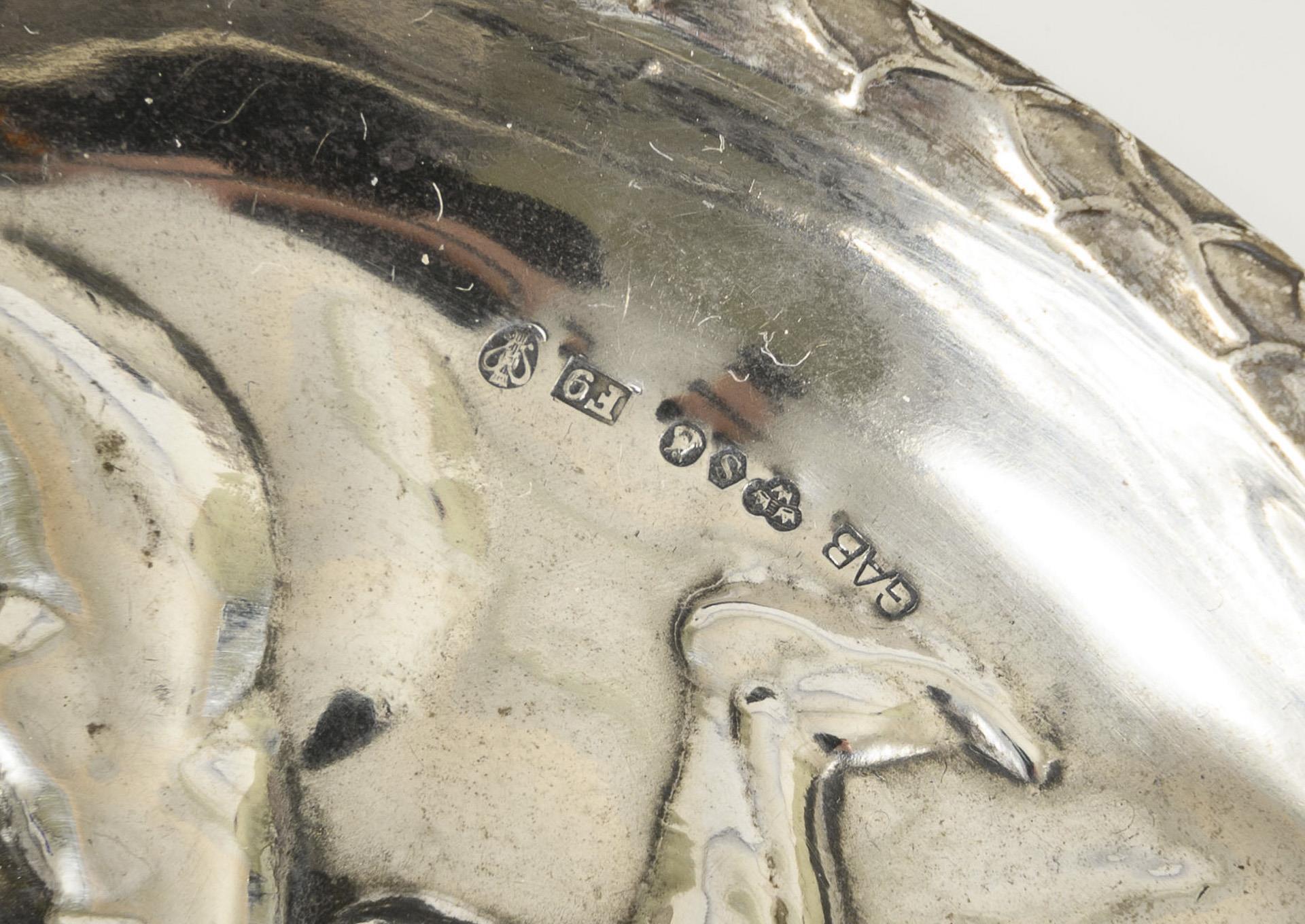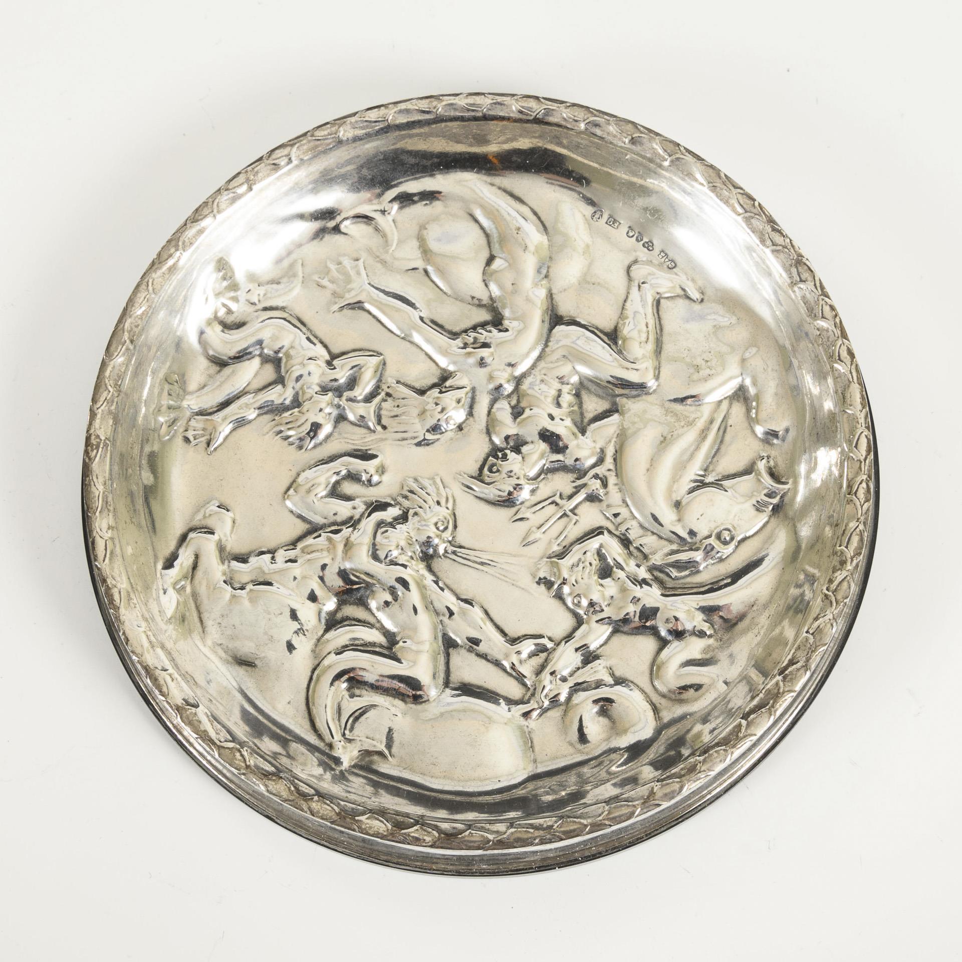 Silver nut or confectionery plates with mythological scenes. Some dents.