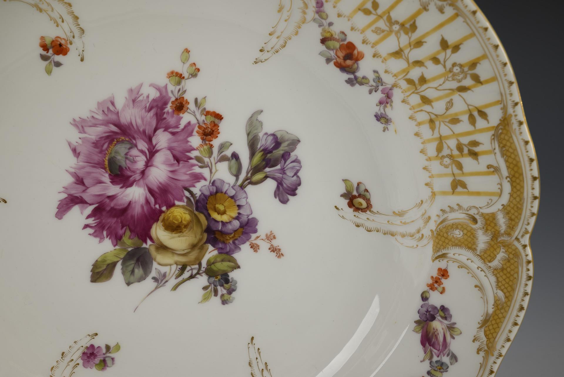 Polychrome painted, decorated in gold. Ø 34.5 cm.