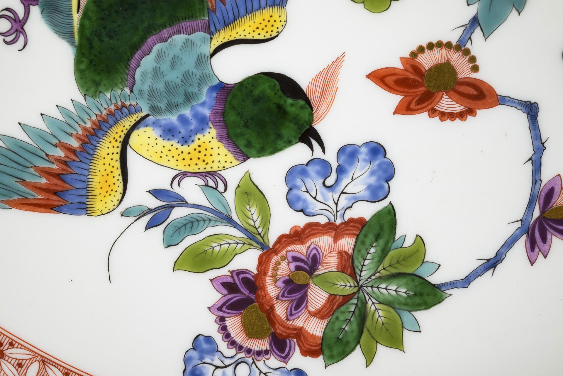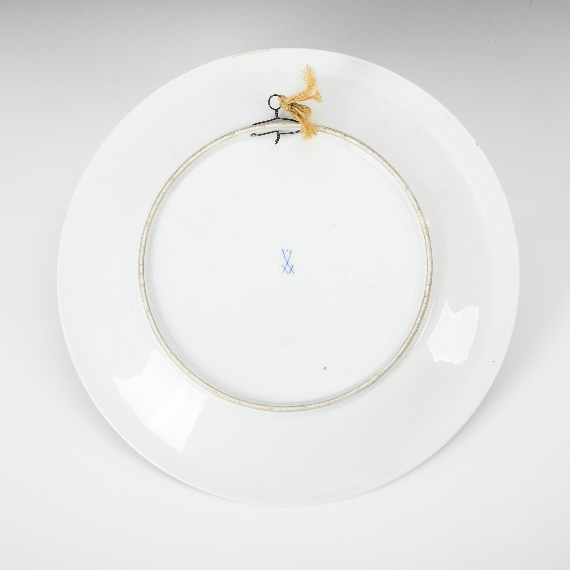 Polychrome painted, decorated with gold. Ø 34.5 cm.
