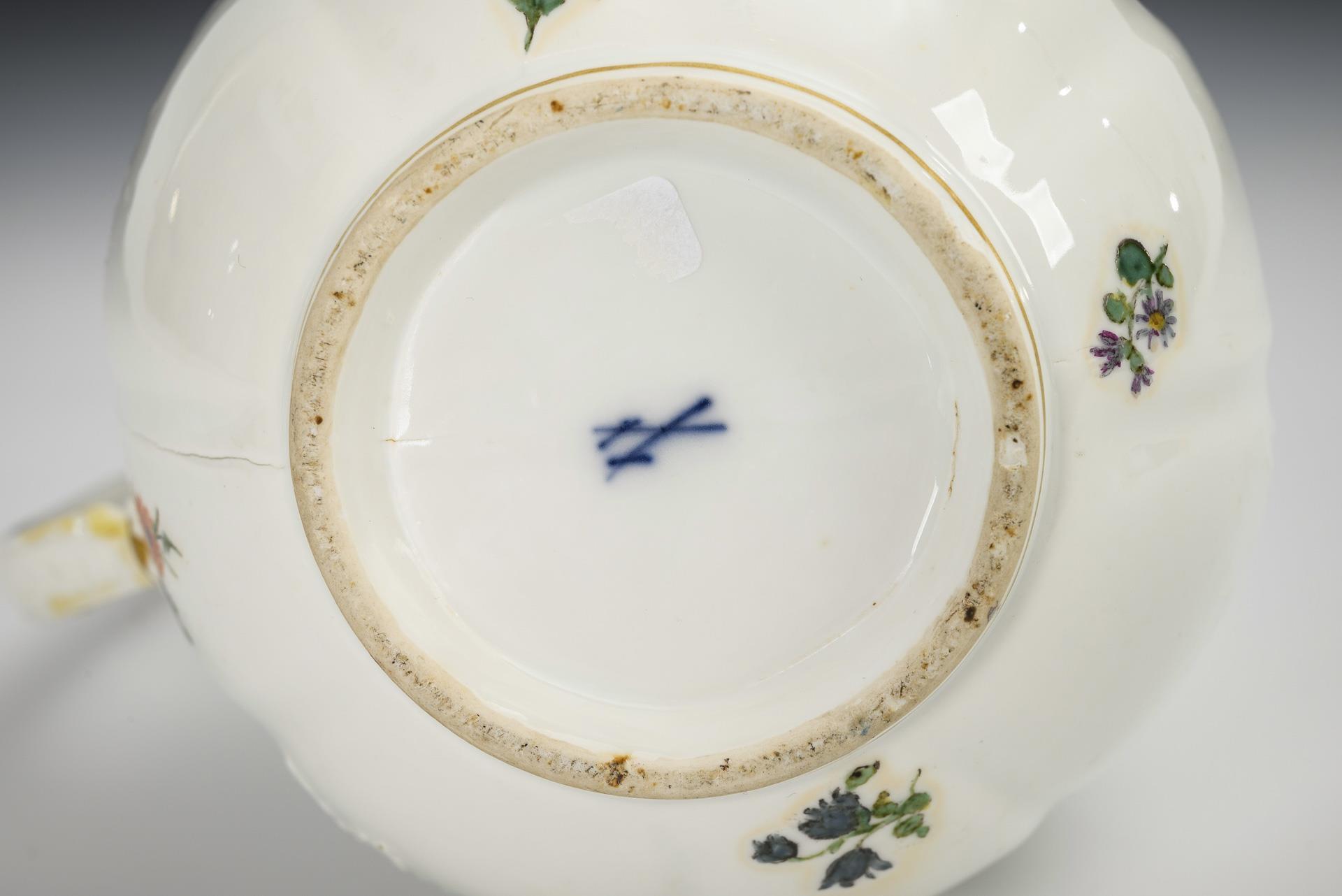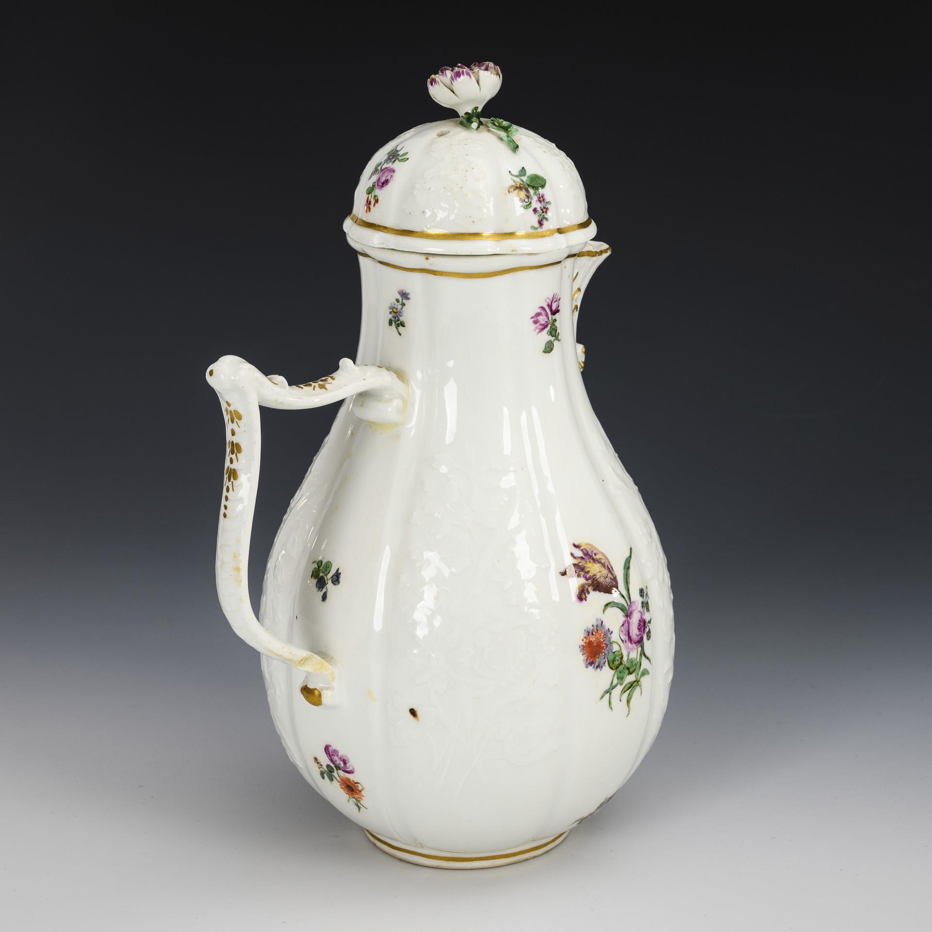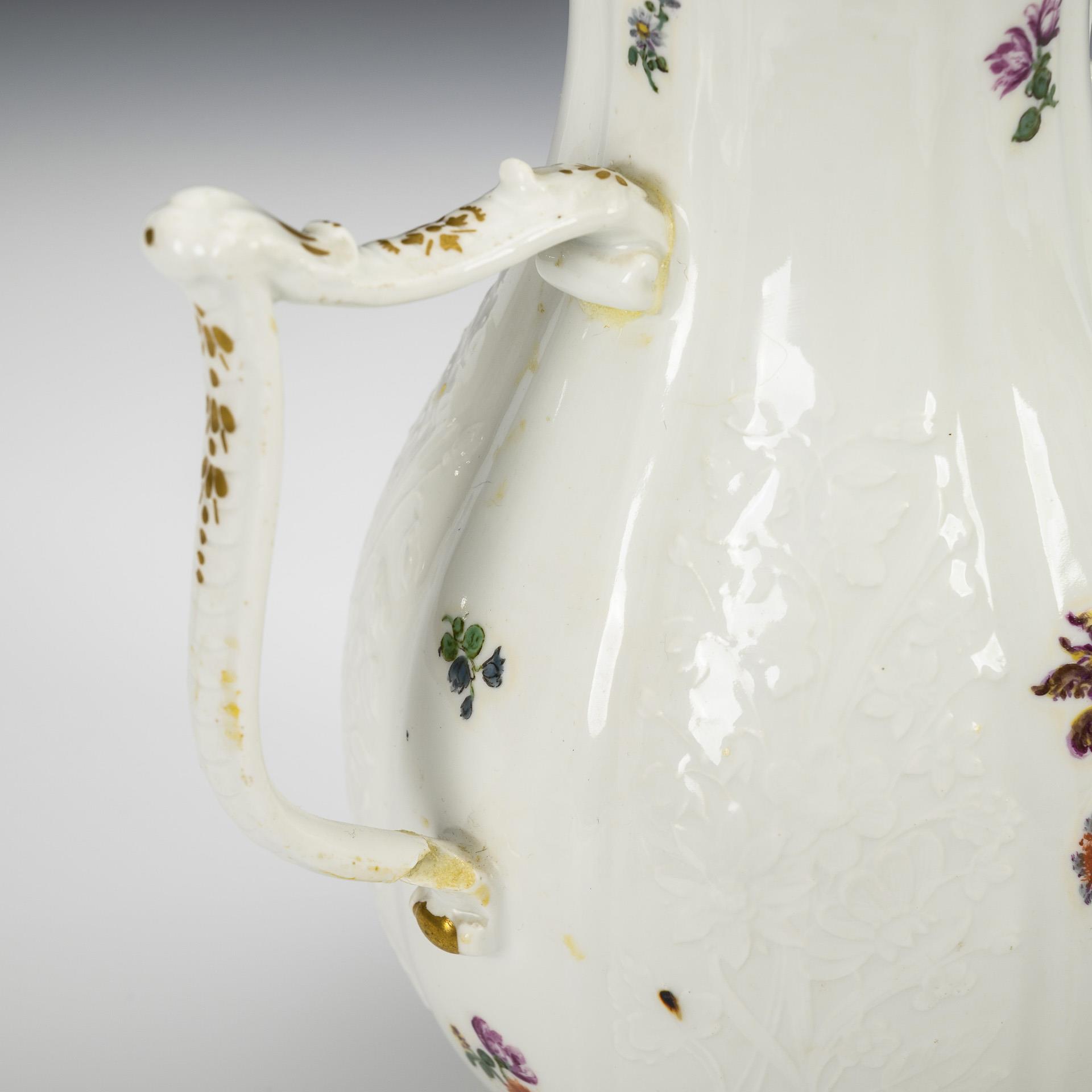 Baroque coffee pot with flower painting. Meissen.