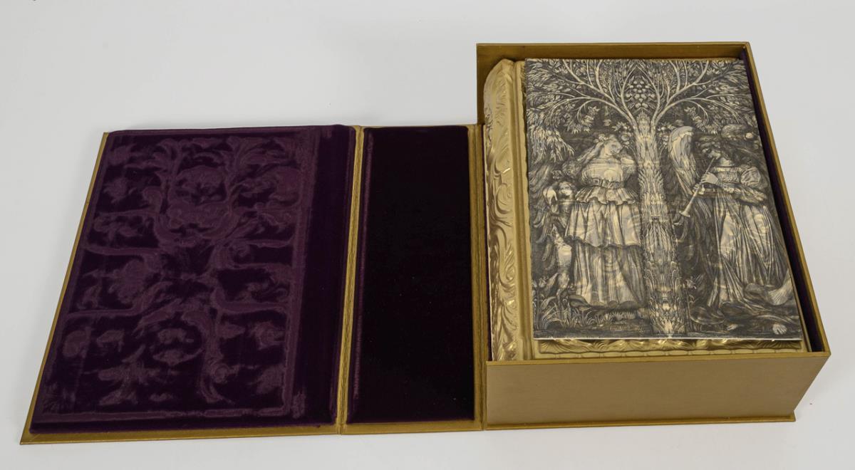 Numbered copy 6100. Gold-colored embossed binding, gilt edges, in fine box with booklet.