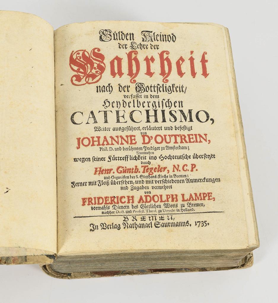 Translated by Henr. Günth. Tegeler, annotated by Friderich Adolph Lampe. In half vellum binding. Spine somewhat torn, signs of use.