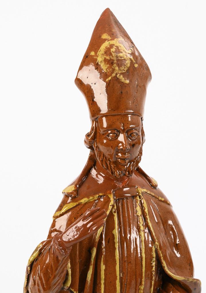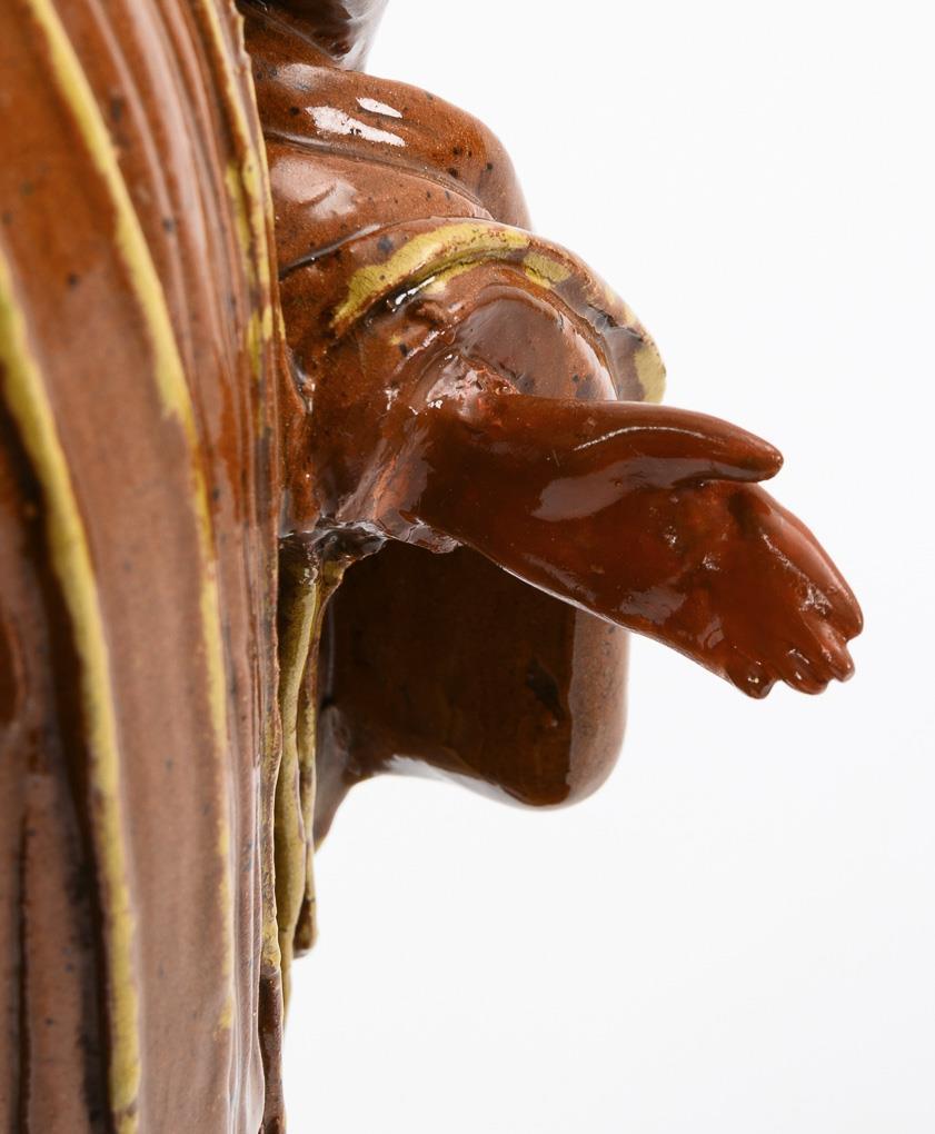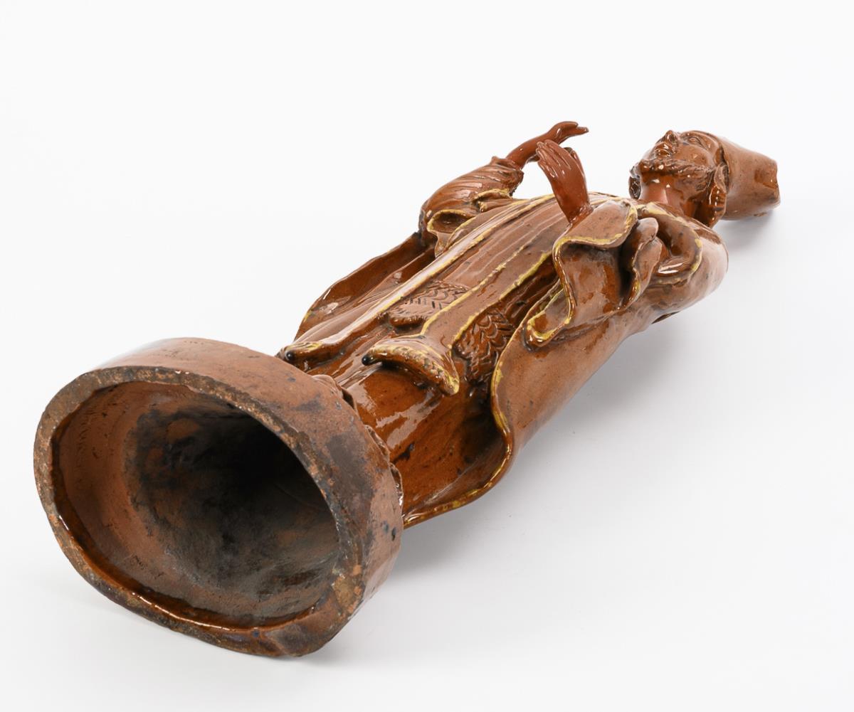 Red clay, painted brown and yellow, colorless lead glaze. H 49 cm.