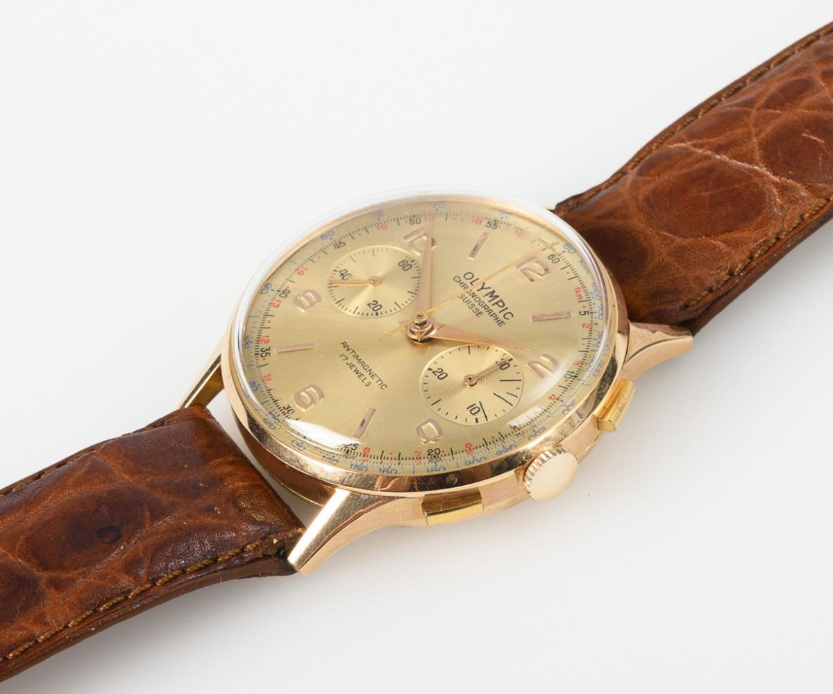 Gold "Olympic" wristwatch with telemeter. Chronographe Suisse.