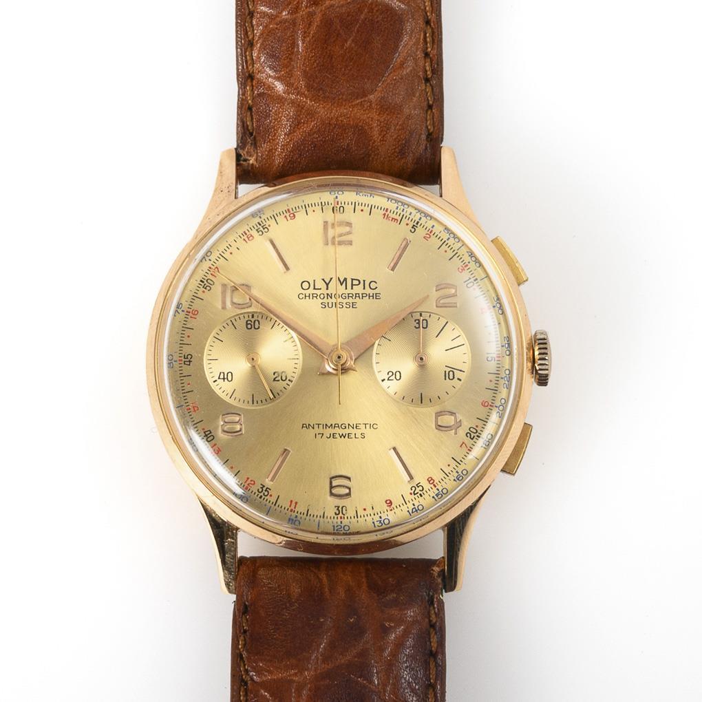 Gold "Olympic" wristwatch with telemeter. Chronographe Suisse.