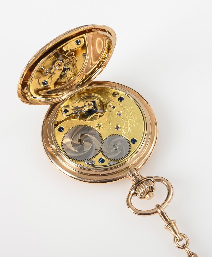 Sold to the company K.H. Heusslein, Darmstadt on December 15, 1903. Brand DUF, caliber 45, movement no. 52696, case no. 52696.