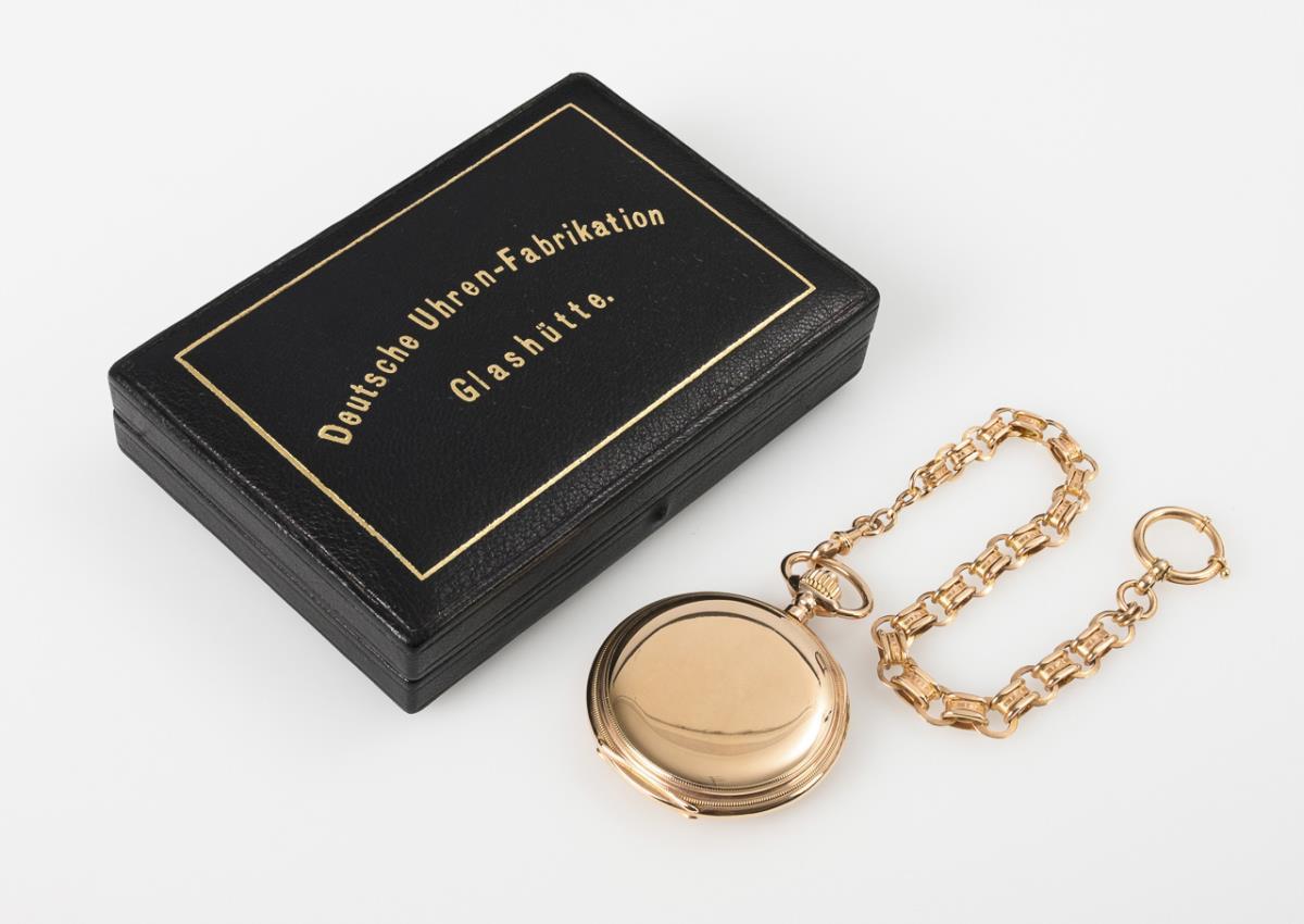 In ALS watch case (replica), with certificate from the Glashütte Watch Museum dated 23 June 2009 and copy from the December 1903 sales book, Wempe overhaul receipt from September 2010.