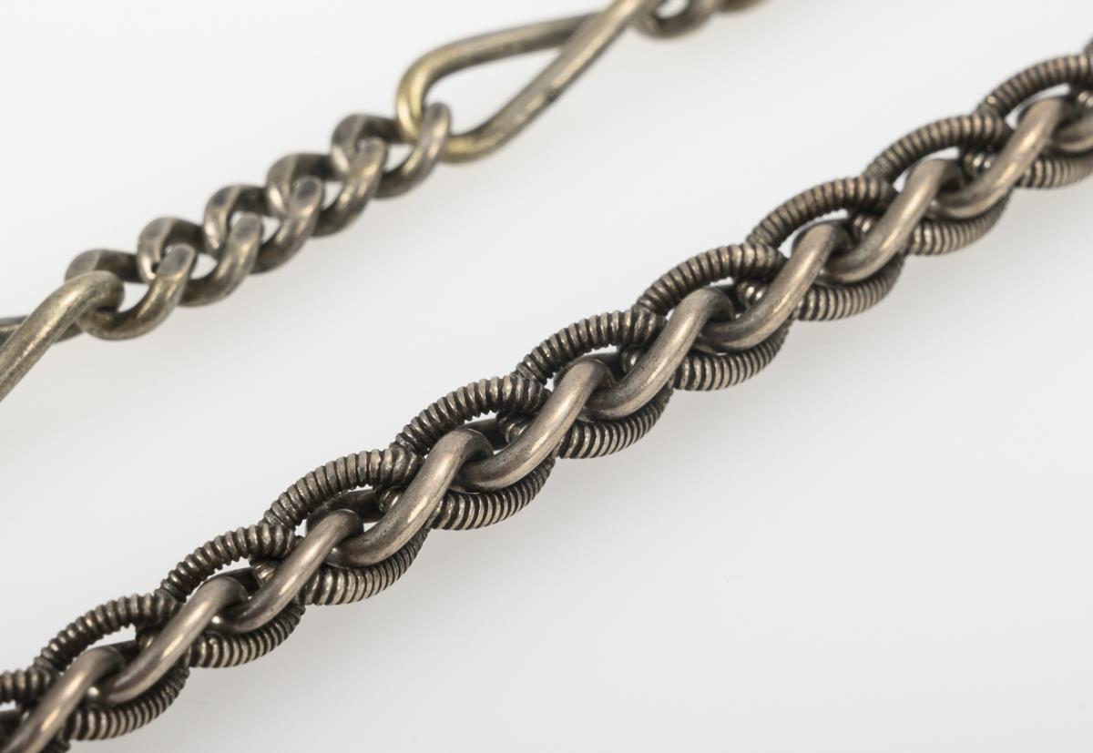 2 silver watch chains.