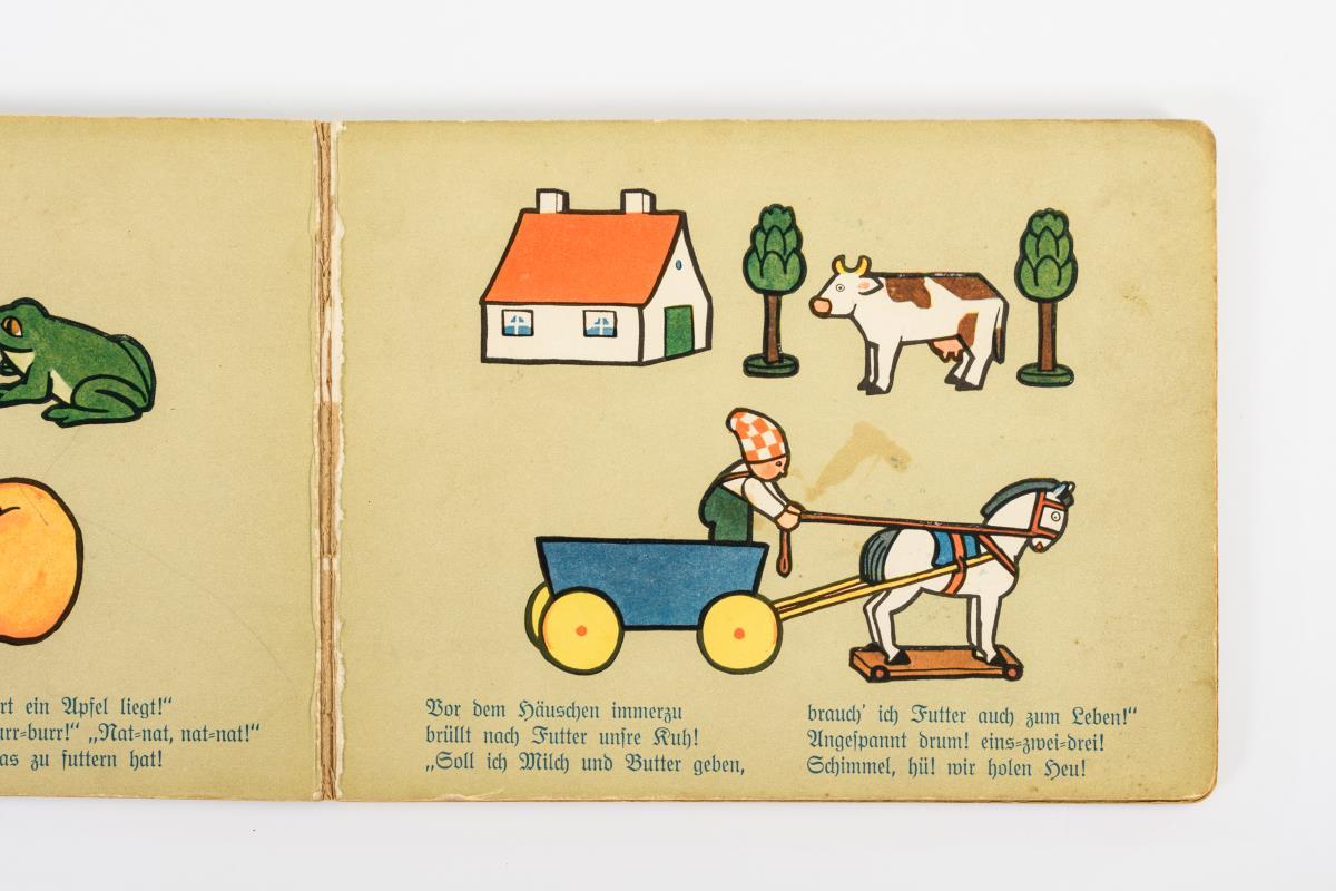Alfred Hahn Verlag: Dietrich und Sell, Leipzig o.J. 1.-5. Auflage. Hartpappbilderbuch mit Farblithographien auf 8 Seiten. 15,5 x 20 cm. Altersgemäße Gebrauchsspuren..