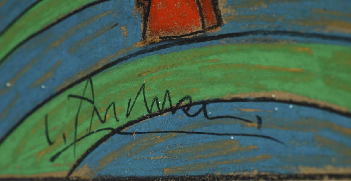 Oil crayon. Signed lower left, inscribed/titled on verso.