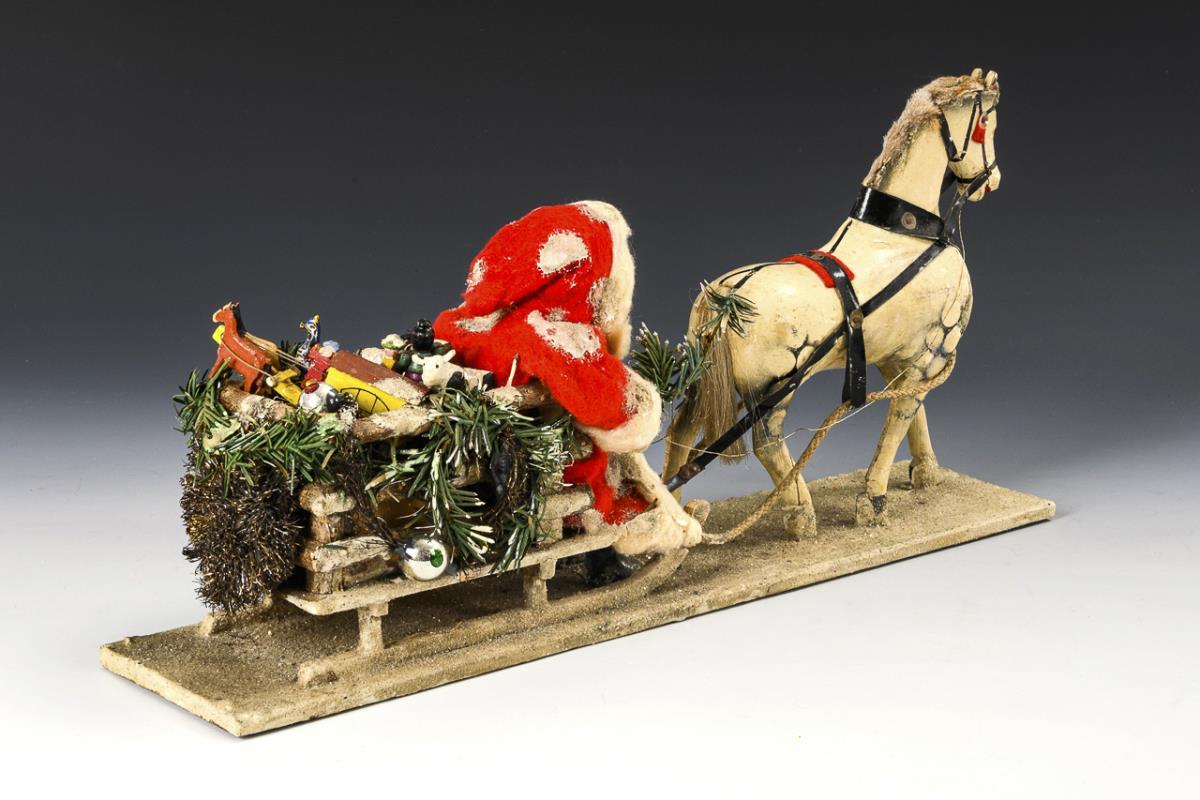 Santa Claus on a horse-drawn sleigh.