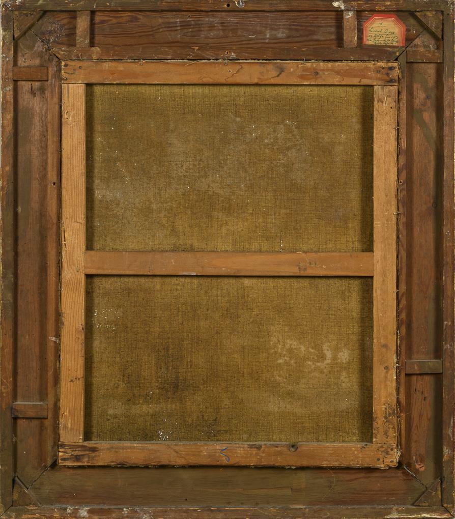 65 x 54 cm. Framed : 84 x 73 cm (gold stucco frame).