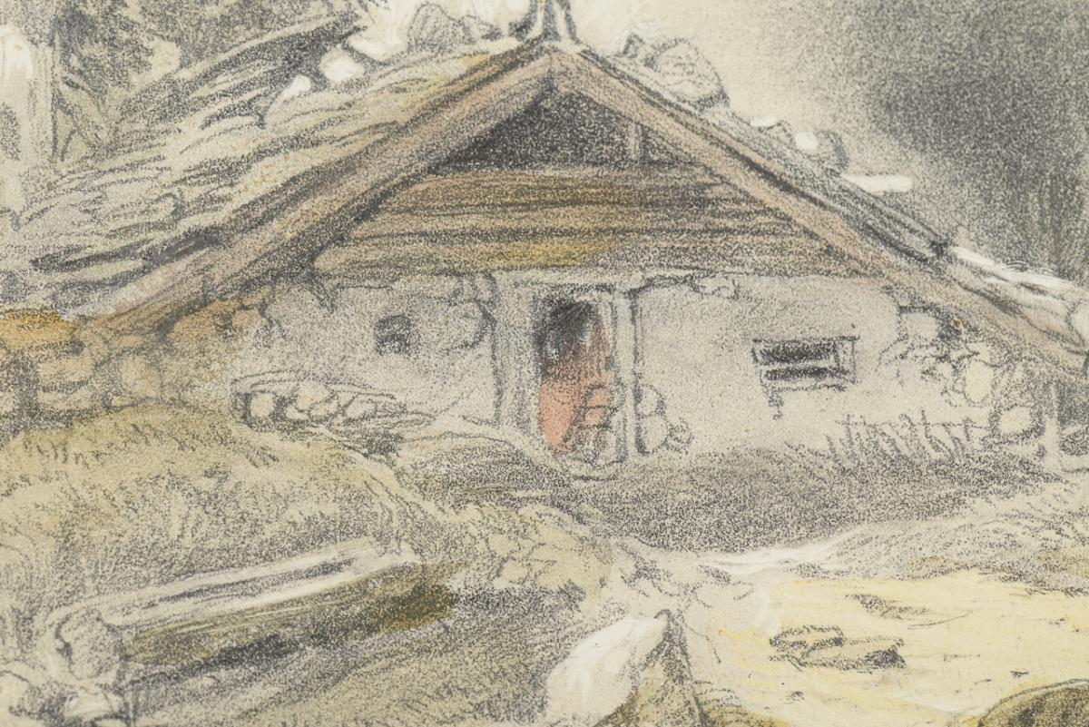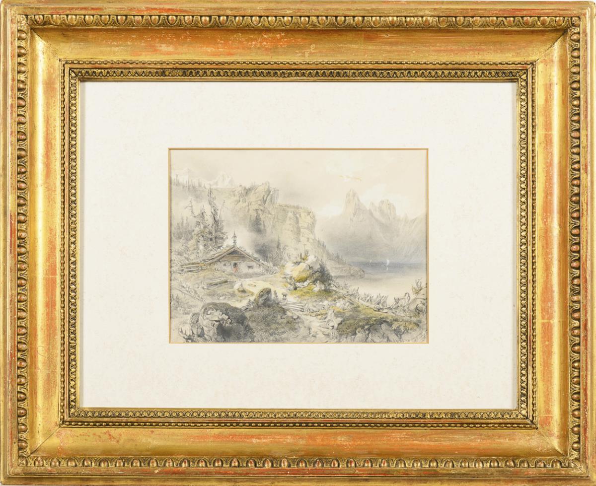 Watercolor pencil drawing. Indistinctly signed lower right. 19th century