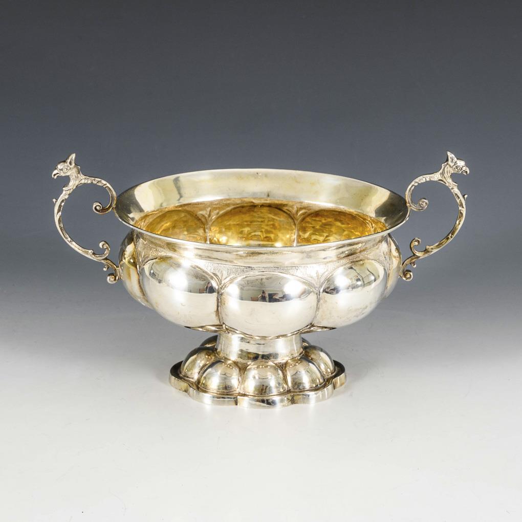 Silver, gilded inside. 14.5 x 25 x 15 cm. 473 g.