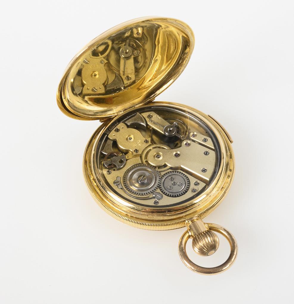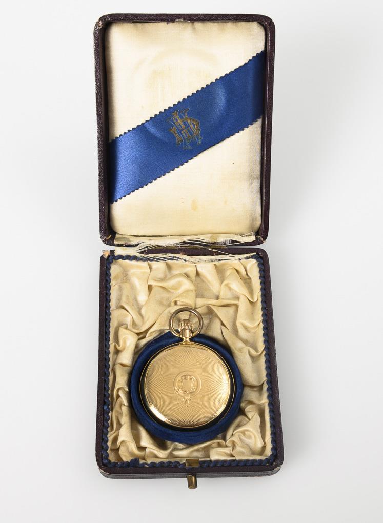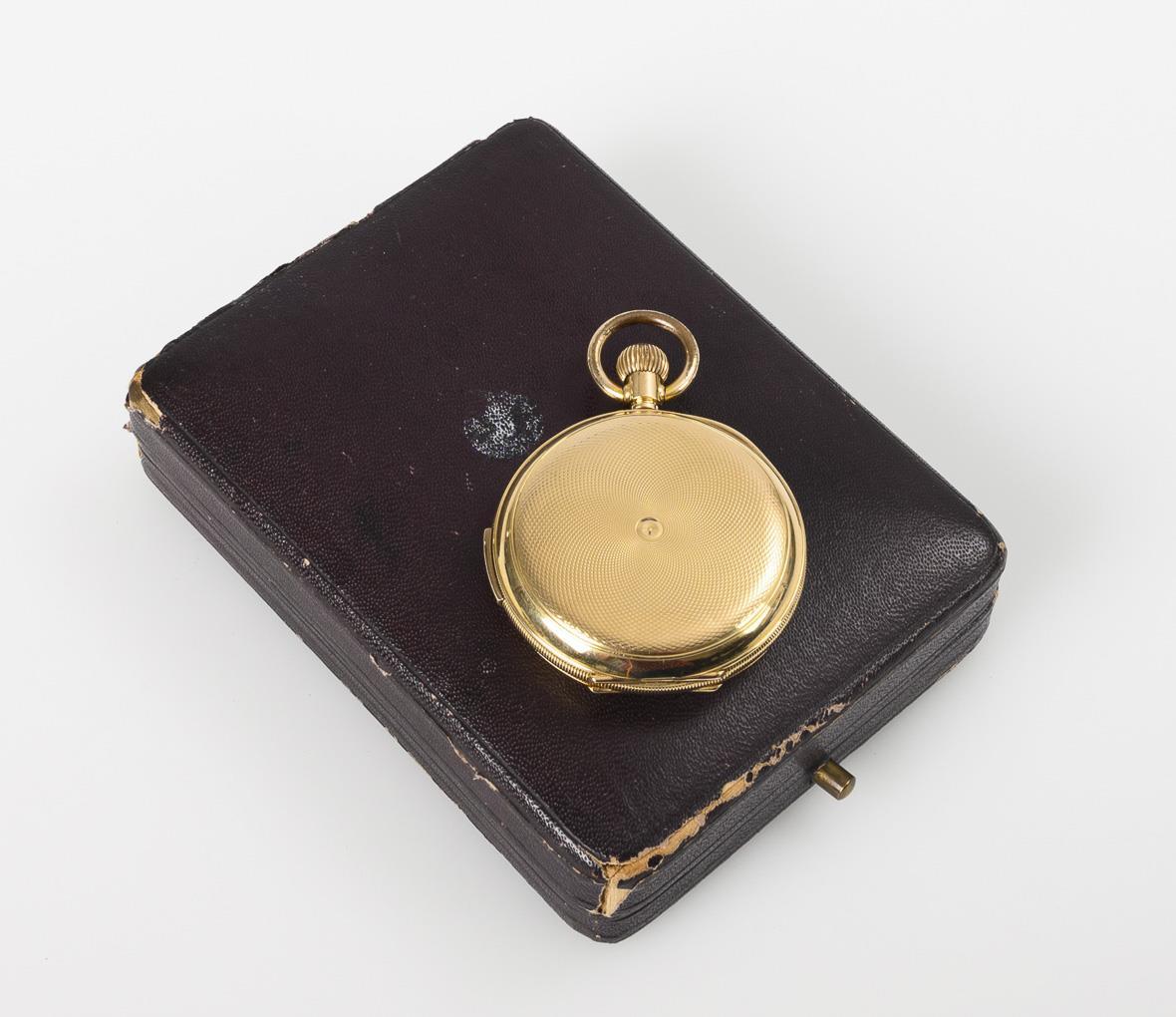 Golden savonnette with quarter-hour repeater in case. Fernand Bonnet.