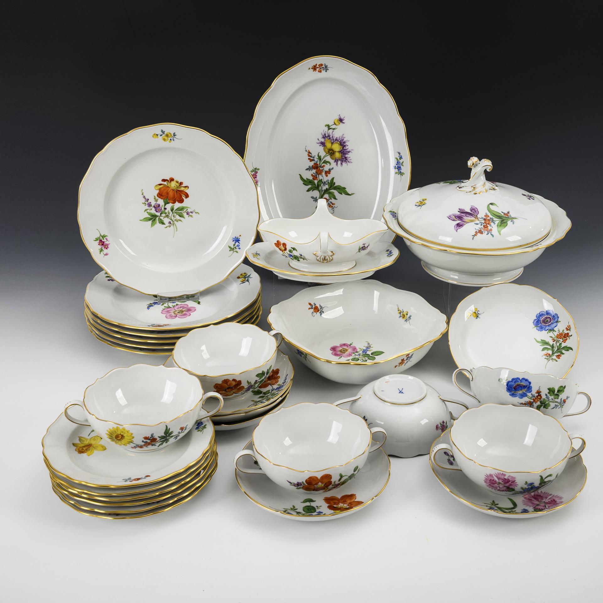 Dinner service with flower painting. Meissen.