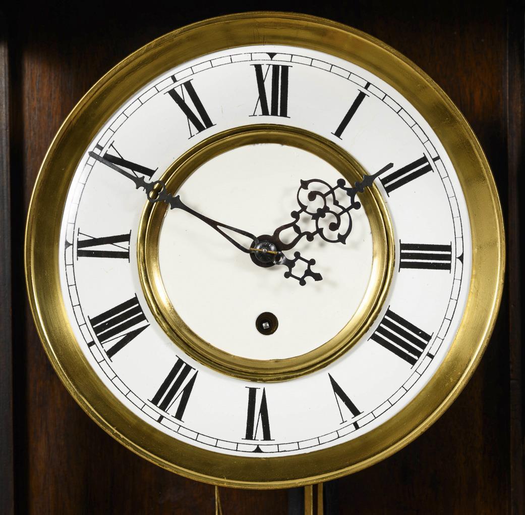 With 1 weight and pendulum, without crank. The first Viennese pendulum clock factory Gebrüder Resch was founded in 1862 by the court jeweler Lorentz Resch in Vienna. Another factory was opened in Ebensee in 1871 and quickly became one of the most important clock manufacturers in Austria-Hungary. The factory in Vienna was closed in 1883. In 1901, the Gebrüder Resch pendulum clock factory in Ebensee was sold to Gebrüder Junghans AG. The "Uhrenfabrik Ebensee Arthur Junghans, Commerzienrath" was closed in 1920.