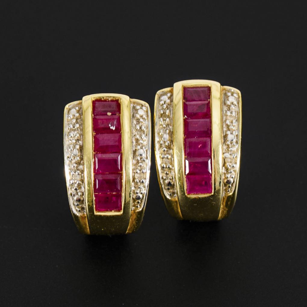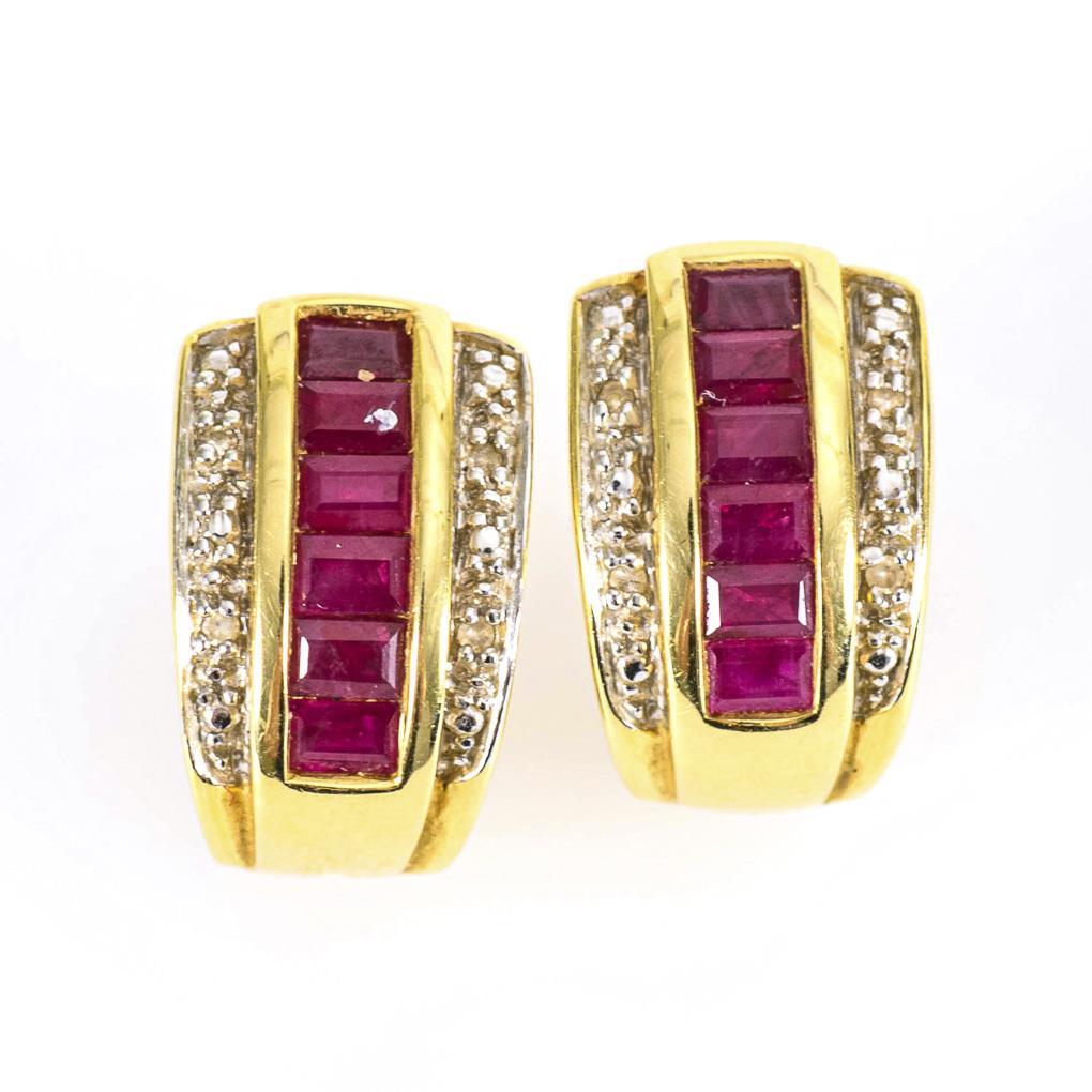 Pair of stud earrings with rubies and diamonds.