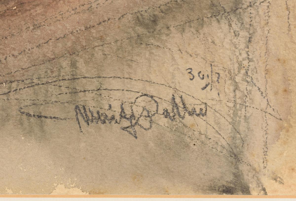 Rechts unten Bleistiftsignatur mit undeutlichem Zusatz.