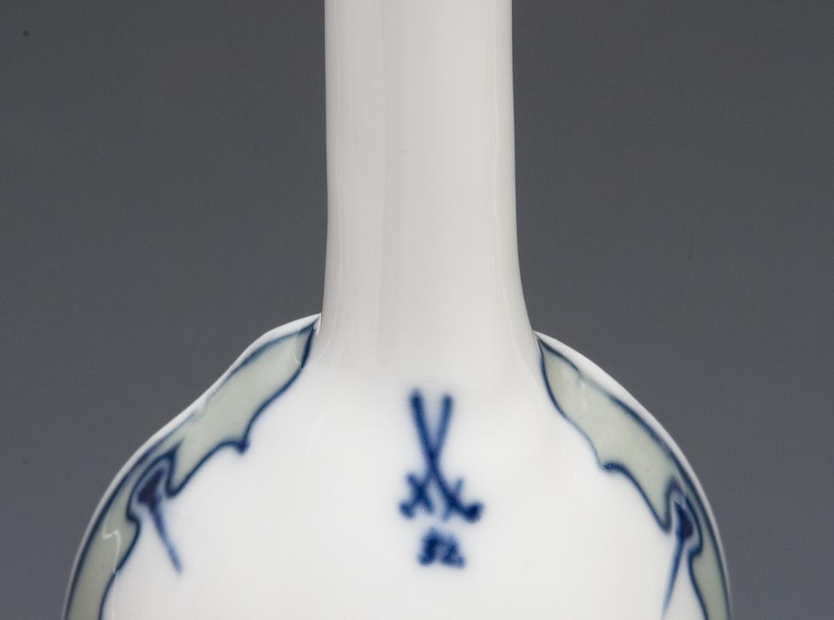 Model year: 1901. celadon green and cobalt blue underglaze painting, "wing pattern", shape "T smooth". Painter's marks, sword marks.