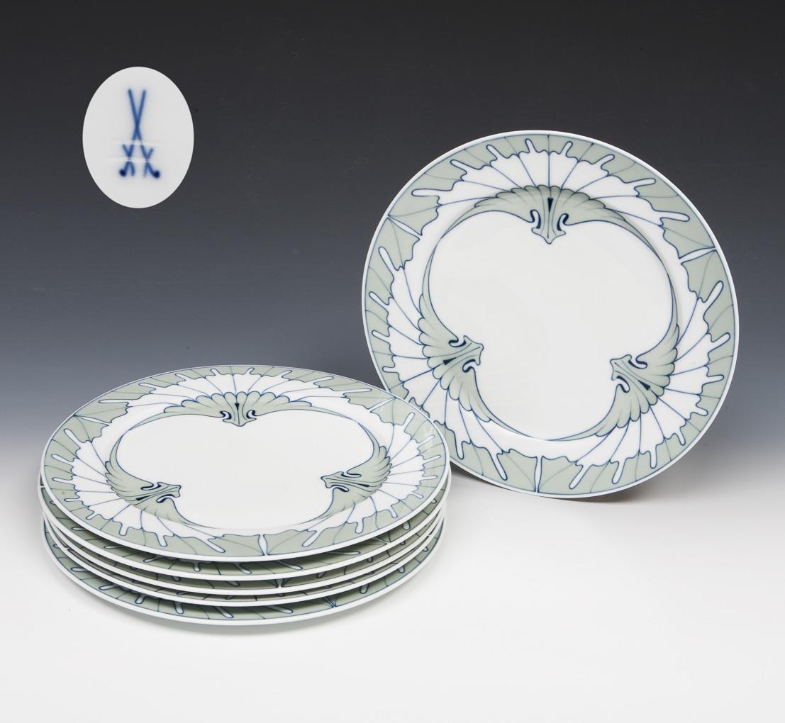 Set of 6 Art Nouveau dinner plates. Meissen.
