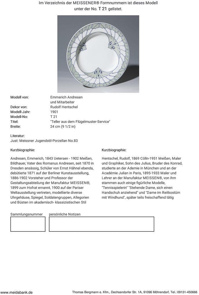 Hentschel: painter and graphic artist, studied at the academy in Munich and at the Académie Julian in Paris. 1895-1933 painter and teacher at the Meissen manufactory * Partner auction Bergmann.