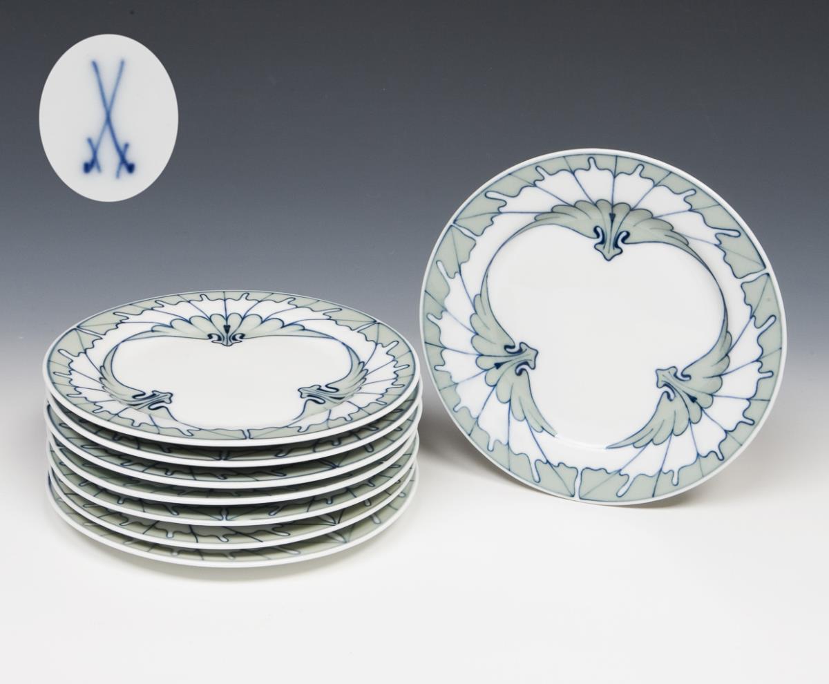 Set of 8 Art Nouveau dessert plates. Meissen.