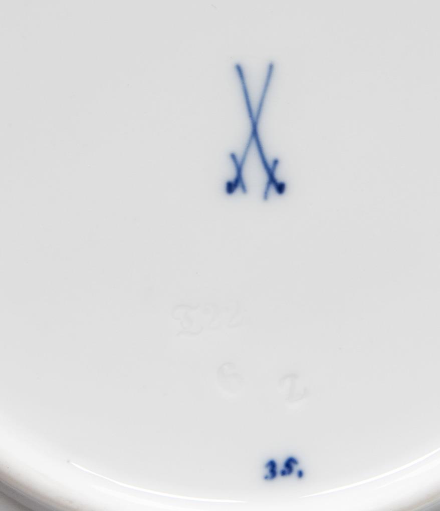 Model year: 1901. celadon green and cobalt blue underglaze painting, "Flügelmuster", shape "T glatt". Press marks, painter's marks, sword marks.