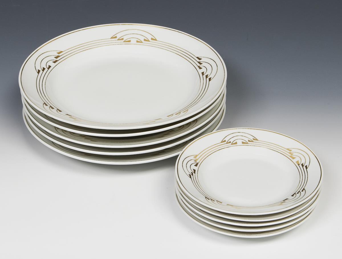 Form model from 1901, decor model from 1907. Geometric painting in gold, "Bügelservice", form "T- galtt". Press marks, sword marks.