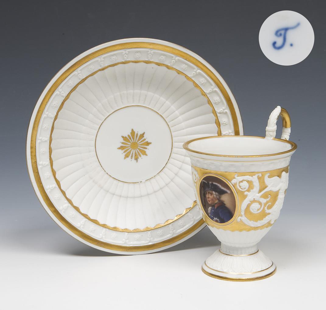 Portrait cup, saucer: Frederick the Great. Tettau.