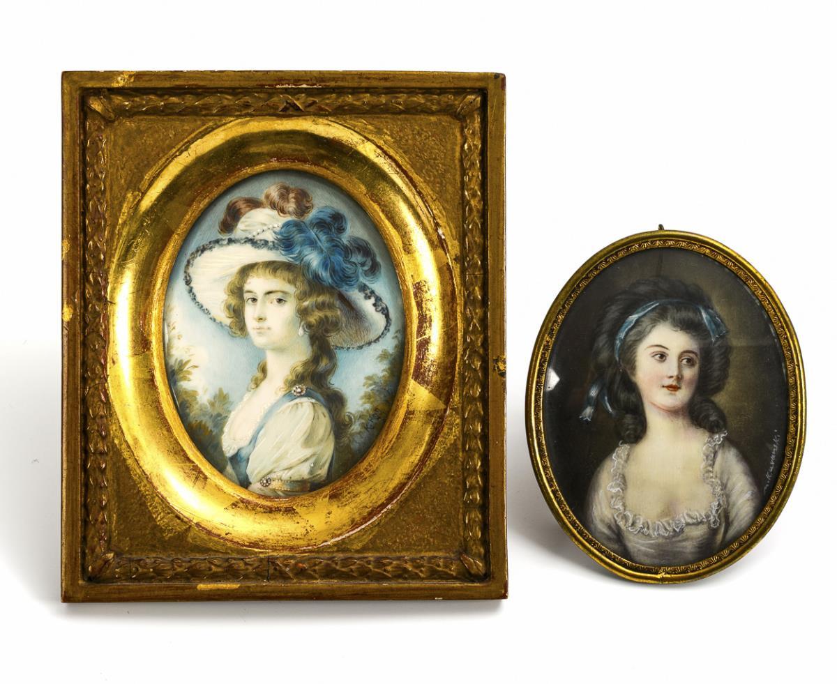 2 miniatures: portraits of ladies.