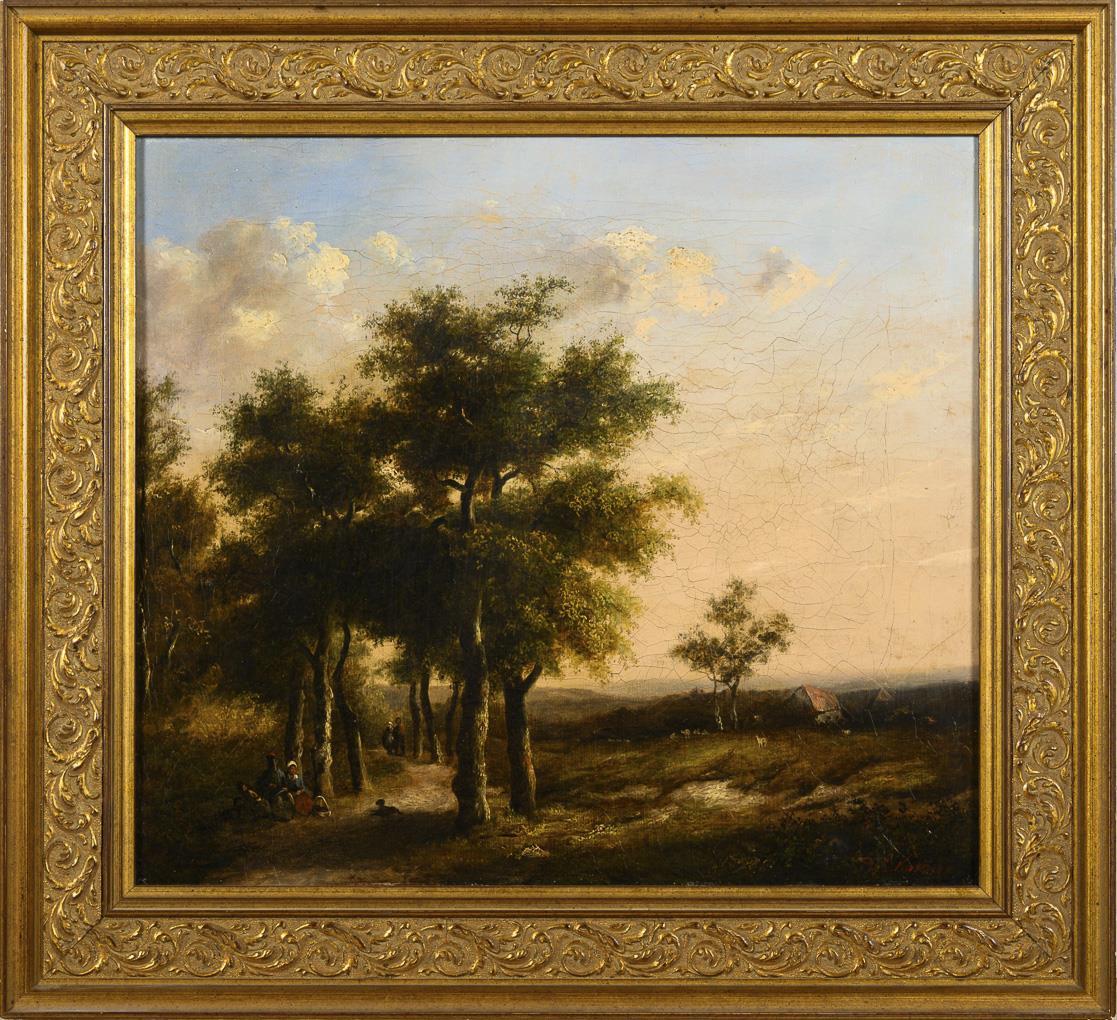 Landscape painter 19th century: Sunny landscape with staffage