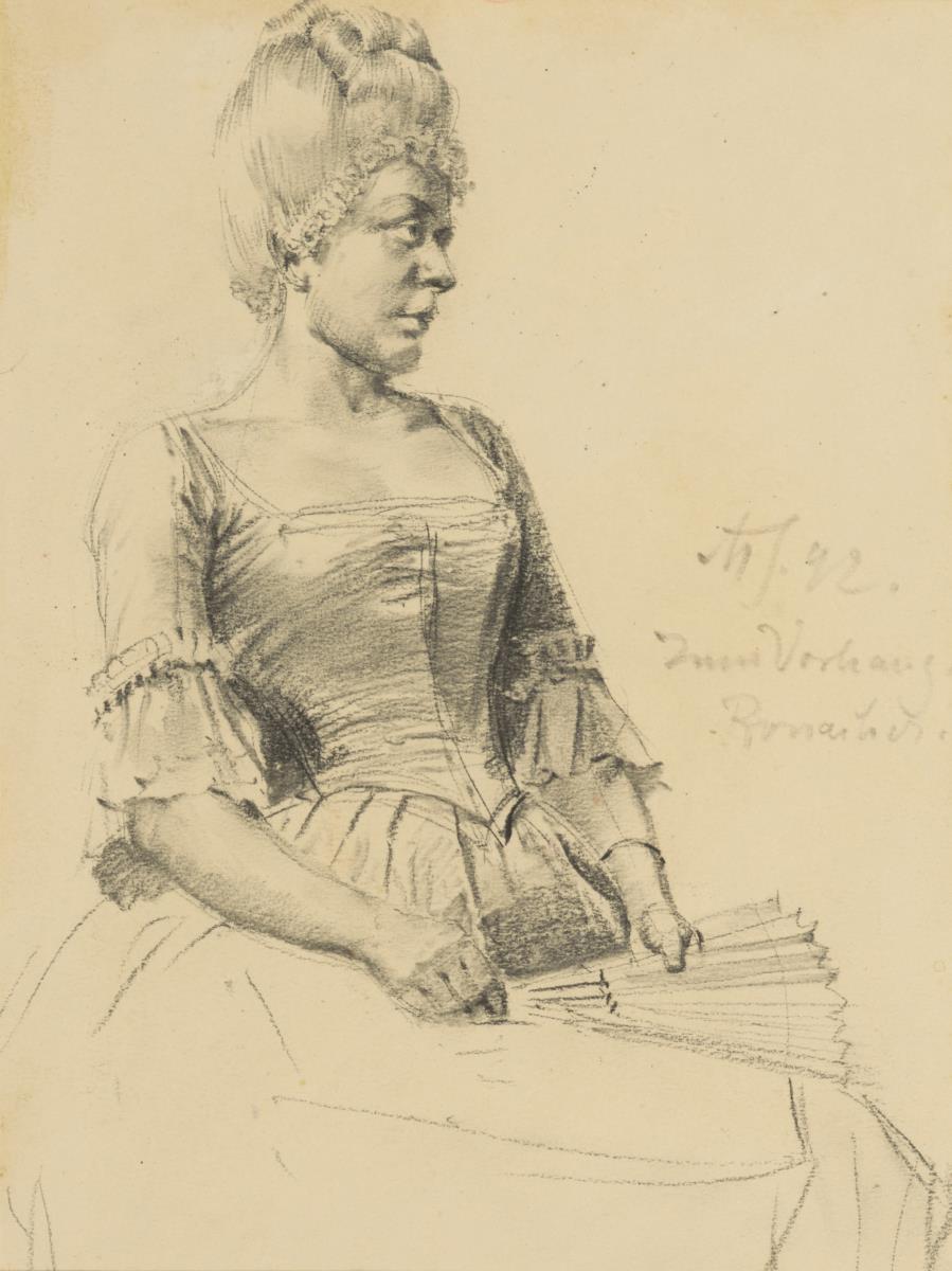 Seliger, Max: Rokokodame. Kohlezeichnung, re. monogr., dat. (18)92