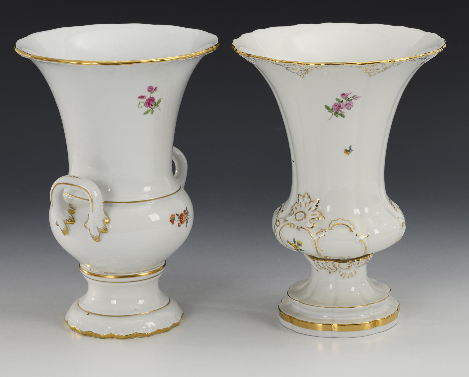 1x krater vase with two handles. / 1x crater vase "B-shape" with rocaille relief.