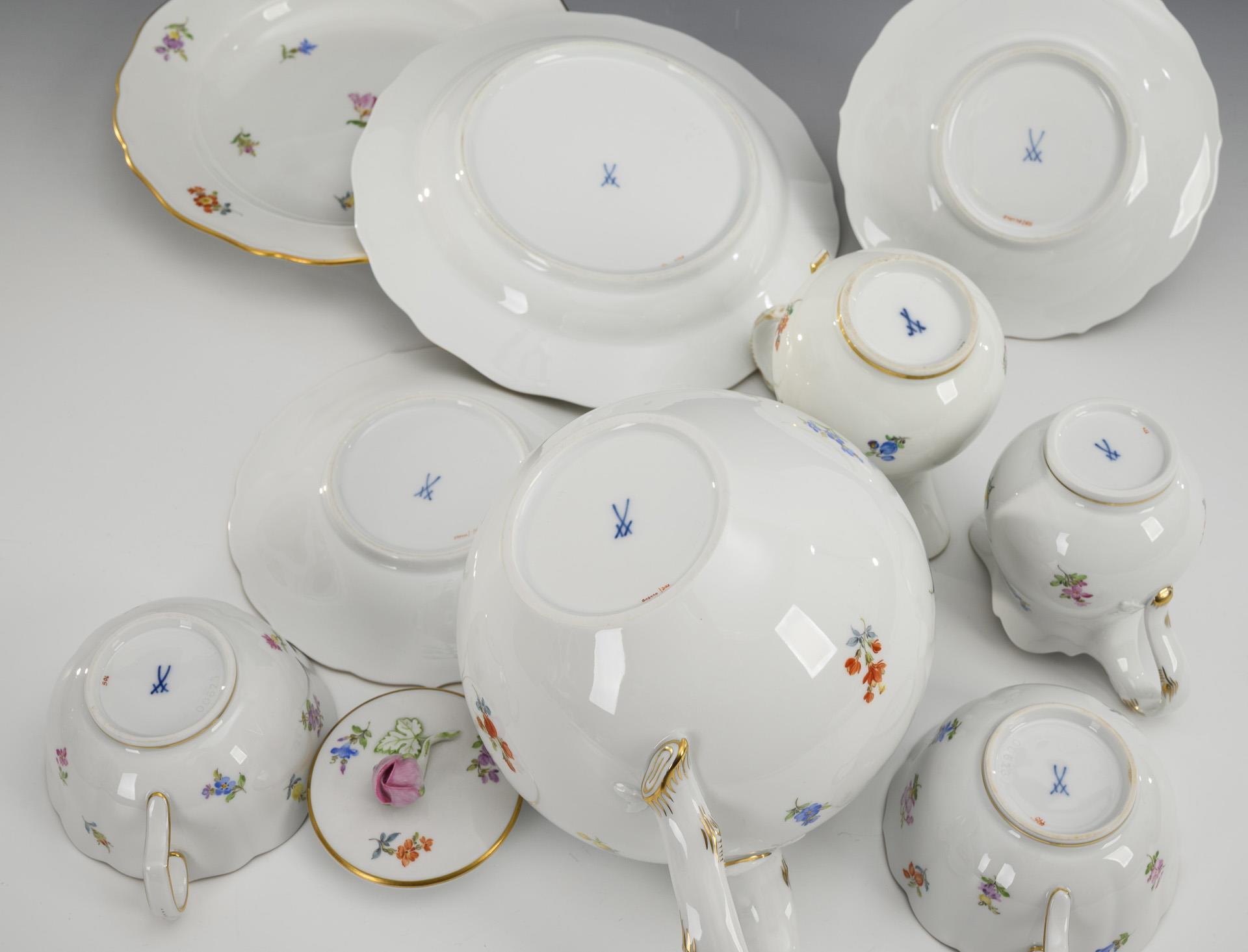9 pieces of a tea service with scattered flower painting. Meissen.