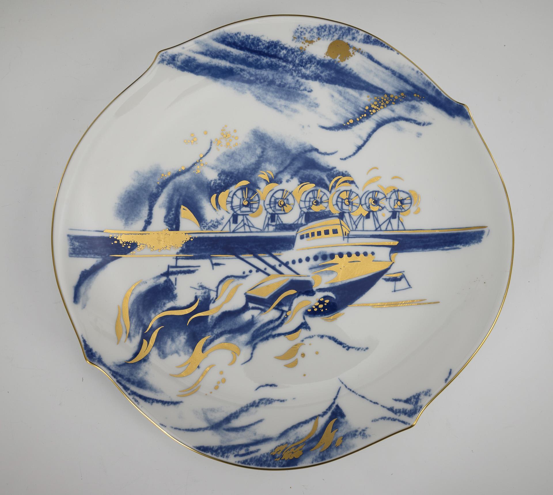 Underglaze blue aquatint decoration, gold staffage. Ø 27 cm. 5.0 kg.