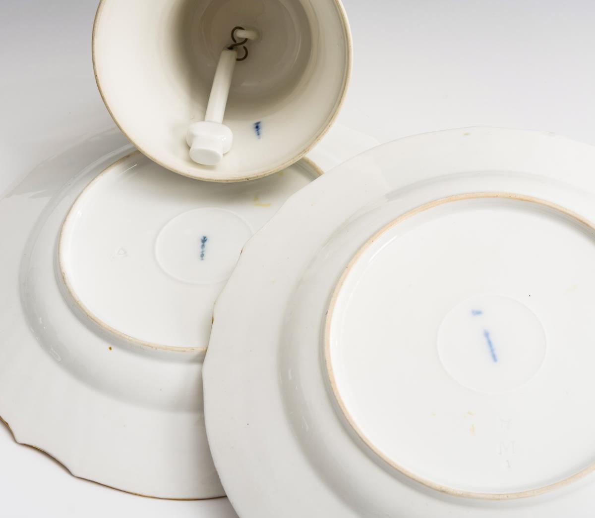 1x Weiß, 2x polychrome Blumenmalerei und Goldstaffage.