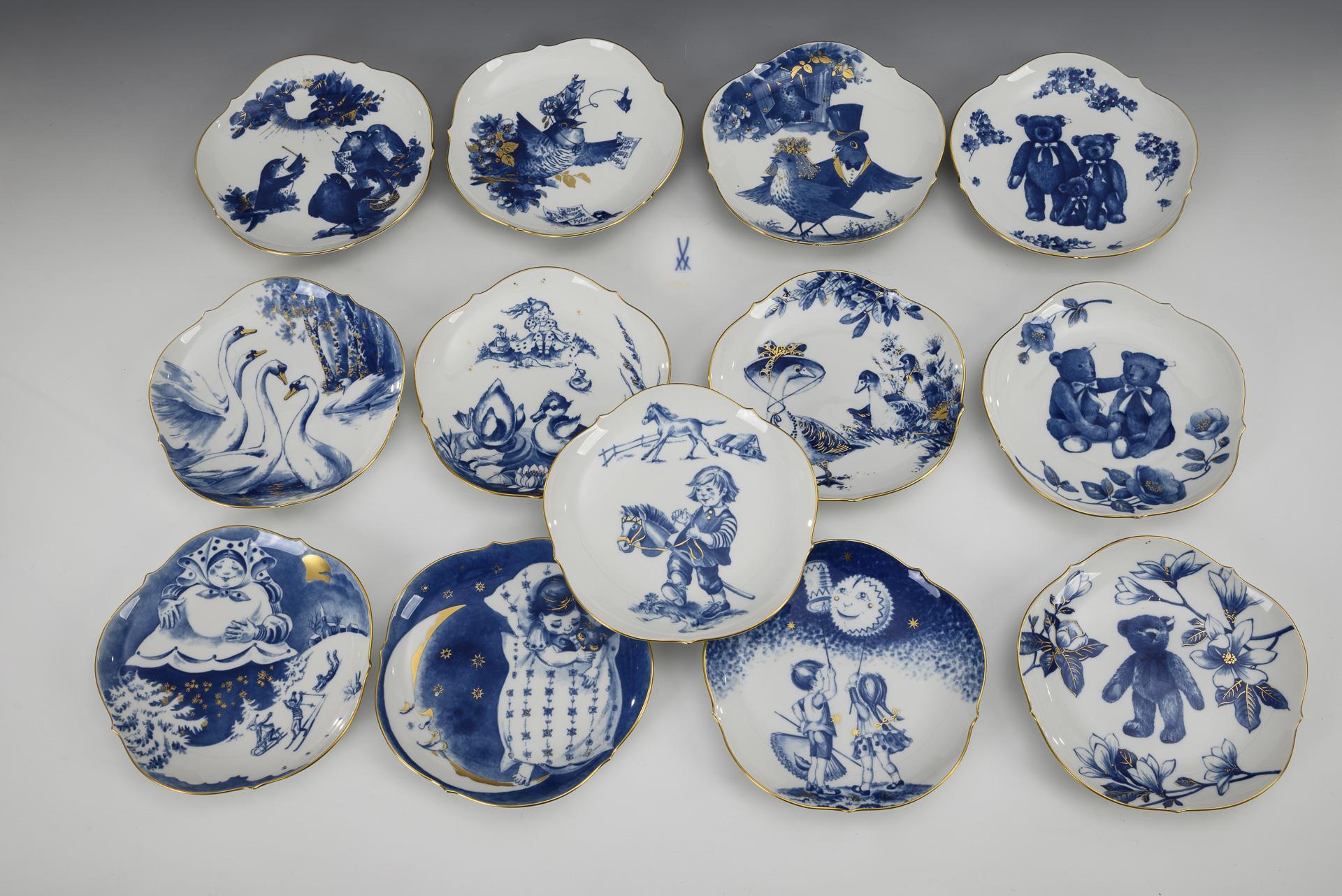 13 wall plates with children's and animal motifs. Meissen.
