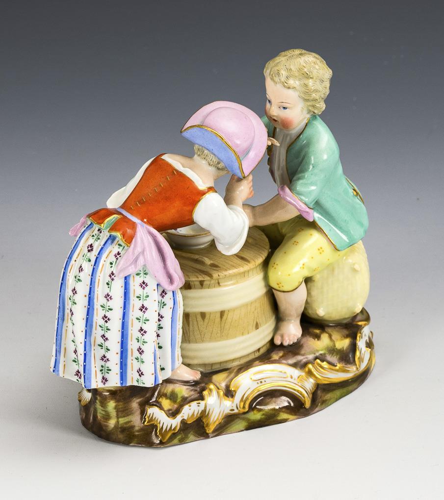Sword mark with blue underline, mid-19th century, red painter's letter "K". Model no.: 1255. design: 1754. KAENDLER, Johann Joachim und Mitarbeiter (1706 Dresden - 1775 Meissen)