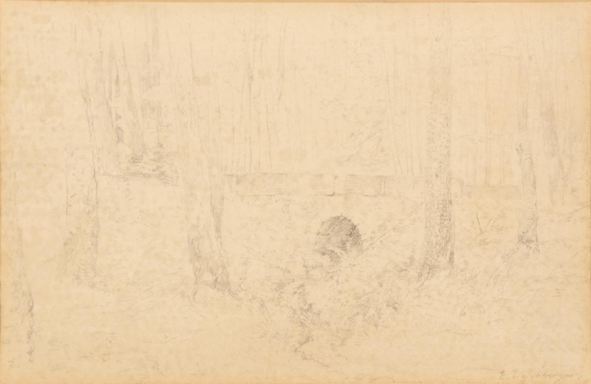 Weichberger, Eduard. "Waldlandschaft mit Bach". Bleistiftzeichng.