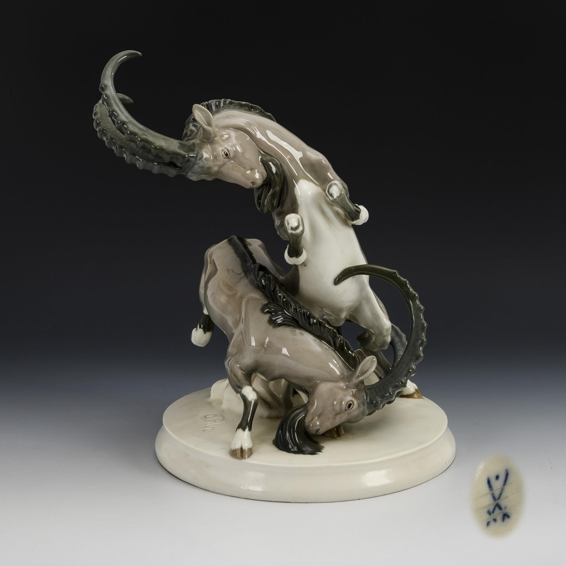 Sculpture of two ibexes fighting with each other. Base and 2 horns restored.