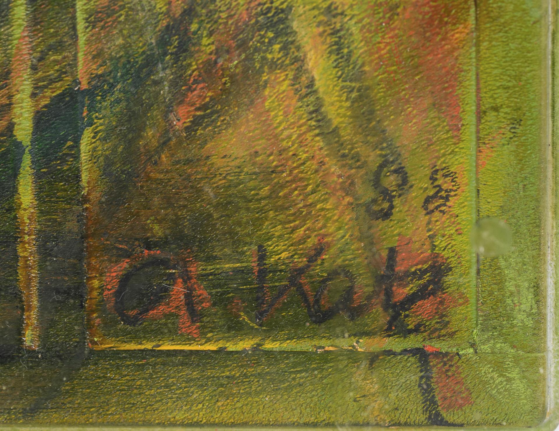 Each mixed media/plexiglass or plastic/plywood with figurative applications. Signed lower right and lower left. Each (19)88.