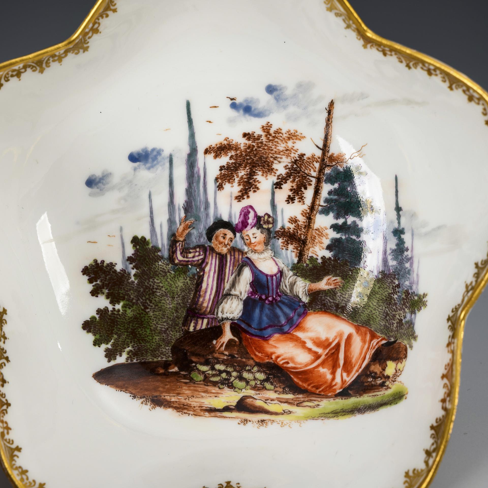 Baroque bowl with Watteau painting. Meissen.