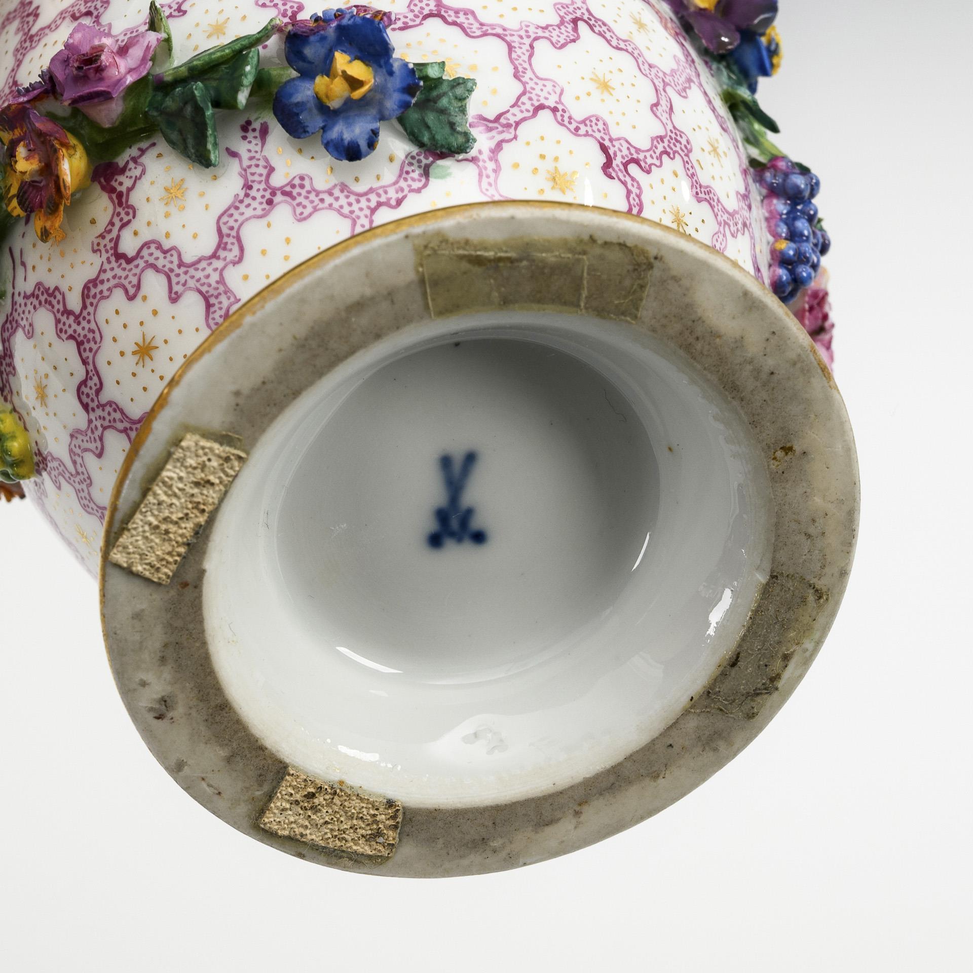 Lidded vase with flower covering. Meissen.